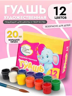 Гуашь художественная краски для рисования 12 цв. 20 мл