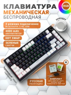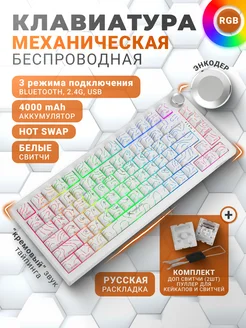 Клавиатура механическая игровая беспроводная RGB, белые свит…