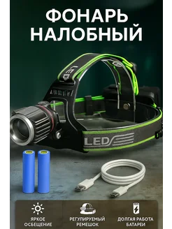 Фонарь налобный аккумуляторный однорежимный, YM-A20–2-P360