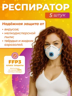 Респиратор от химии и пыли с клапаном FFP3 5 штук
