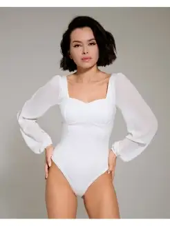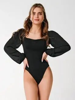 BodyBar Женское корсетное боди с длинным рукавом офис