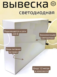 Вывеска с подсветкой панель кронштейн прямоугольная белая