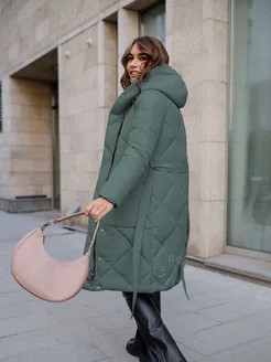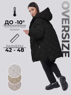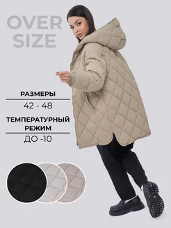 Куртка полупальто осенняя стеганая с капюшоном оверсайз