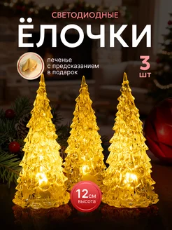 Ёлка светодиодная настольная 3 шт набор жёлтый свет