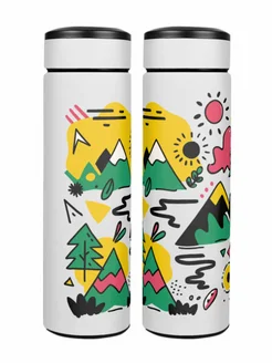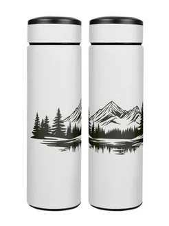 Термос белый для чая вакуумный 0,5 л. с принтом "Горы, лес