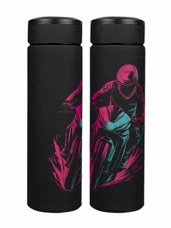 Термос черный для чая вакуумный 0,5 л. с принтом "Байкер на