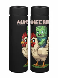 Термос черный для чая вакуумный 0,5 л. с принтом "Майнкрафт