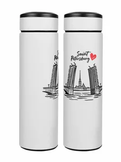 Термос белый для чая вакуумный 0,5 л. с принтом "Разводной