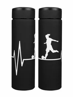 Термос черный для чая вакуумный 0,5 л. с принтом "В ритме с