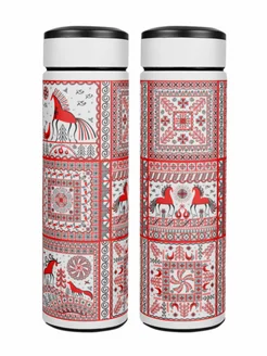 Термос белый для чая вакуумный 0,5 л. с принтом