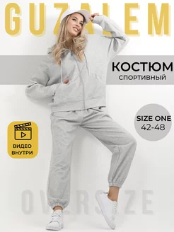 Спортивный костюм на молнии с капюшоном серый без начеса