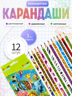 Карандаши цветные, детские, набор 12 цветов