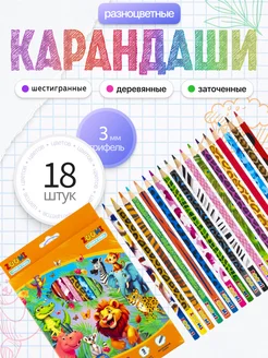 Карандаши цветные, детские, набор 18 цветов