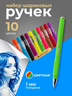 Ручки шариковые набор 10 цв, 1 мм, масляные чернила