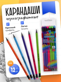 Карандаши простые чернографитные с ластиком 12 шт. HB