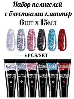 Полигель с Блестками полупрозрачный, набор 6шт 15мл