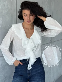 Блузка нарядная белая полупрозрачная летняя с воланами