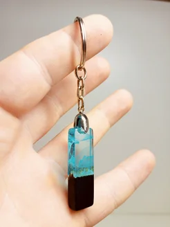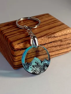 Брелок Горы голубой круглый из эпоксидной смолы и дерева