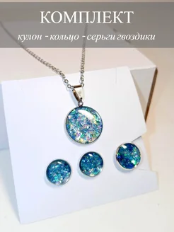 Комплект бижутерии кулон серьги пусеты кольцо подарочный