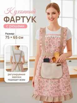 Ретро фартук кухонный хлопковый с рюшами и карманом