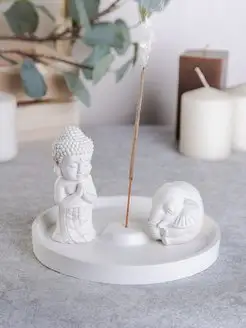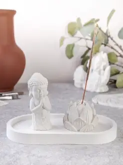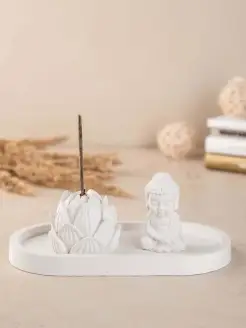 Статуэтка Будда и подставка для благовоний бутон на подносе