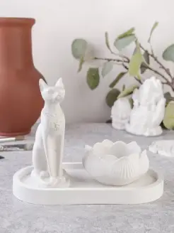 Египетская кошка Бастет и подсвечник лотос на подносе