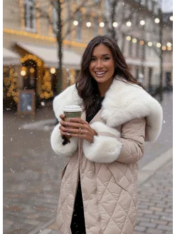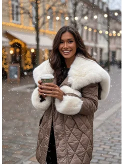 Куртка зимняя стеганая с натуральным мехом и капюшоном