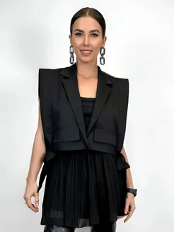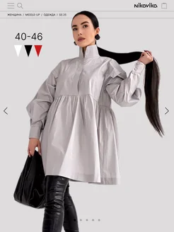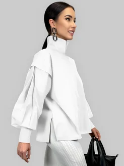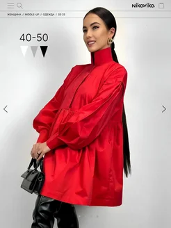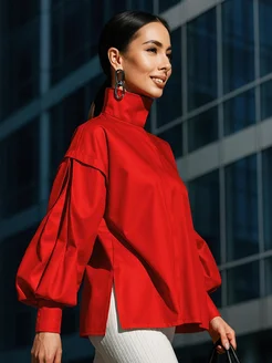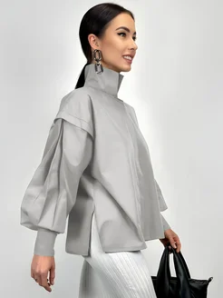 Рубашка оверсайз с объемными рукавами и воротником стойкой