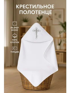 Полотенце с уголком крестильное 80х80 с вышивкой