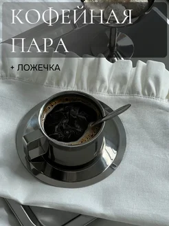 Набор чашка с блюдцем, чайная пара металлическая, кружка
