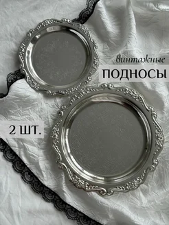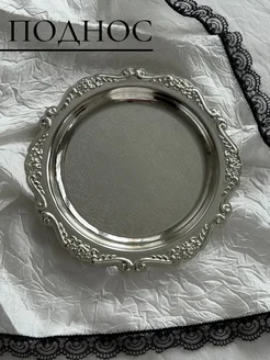 Поднос металлический, тарелка сервировочная винтаж серебро