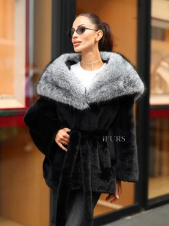 Искусственная шуба из эко меха с поясом кимоно оверсайз