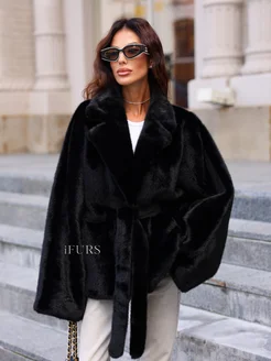 Искусственная короткая шуба из эко меха оверсайз с поясом