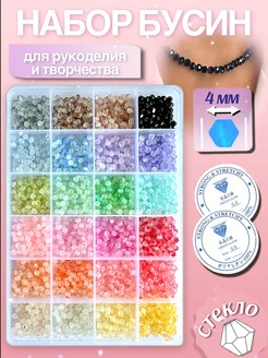 Набор стеклянных бусин биконусы 4мм, 24 цвета, для рукоделия