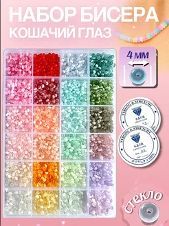 Набор стеклянных бусин "Кошачий глаз" 4 мм, 24 цвета