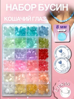 Набор стеклянных бусин "Кошачий глаз" 8 мм, 24 цвета