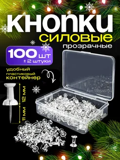 Силовые кнопки-гвоздики прозрачные 1 уп 100 шт. в контейнере