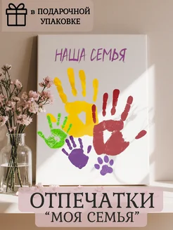Отпечатки рук на холсте для семьи в подарочной упаковке