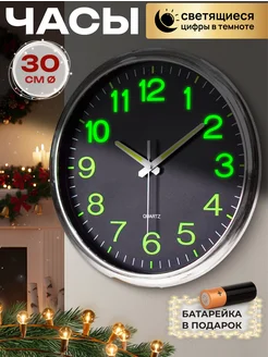 Настенные часы бесшумные светящиеся в темноте 30 см