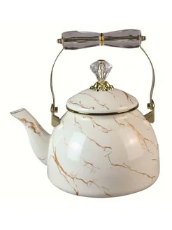 Чайник эмалированный 2,5 л, кремовый мрамор R-2425