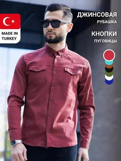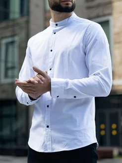 Рубашка мужская белая с длинным рукавом приталенная кнопка