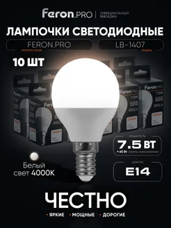 Лампочки светодиодные Шар E14 7.5W 4000K 10 шт