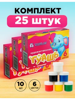 Краски гуашь Слоненок 6цв 60мл густая детская 25 шт