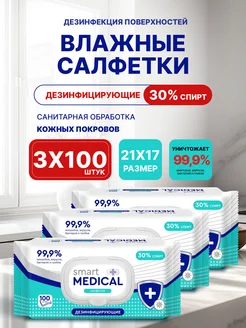Влажные салфетки дезинфицирующие 3 упаковки по 100 шт