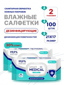 Влажные салфетки дезинфицирующие 2 упаковки по 50 шт