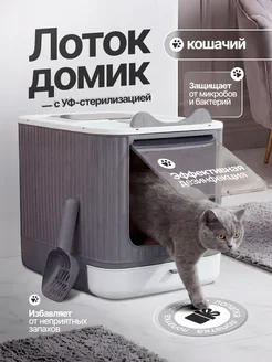 Лоток для кошек большой, закрытый кошачий туалет, домик