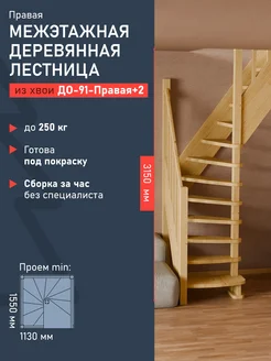 Межэтажная лестница на второй этаж деревянная ДО-91-Правая+2