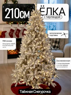 Елка заснеженная литая с гирляндой 210см