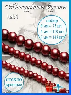 Жемчужные бусины, набор бусин (3 мм, 4 мм, 6 мм) красные