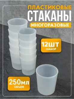 Многоразовые пластиковые стаканы, 12 шт. 250 мл
